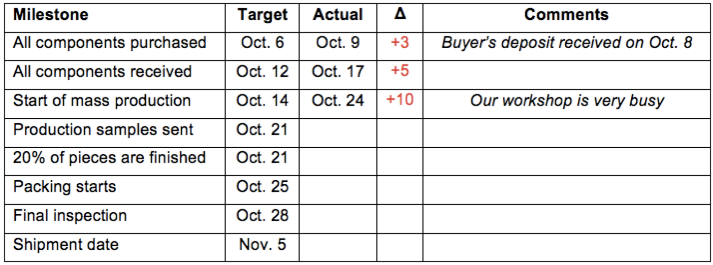 Chinese manufacturers are often late. For some of them, on-time deliveries are truly exceptional events. This is a fact you must count on.