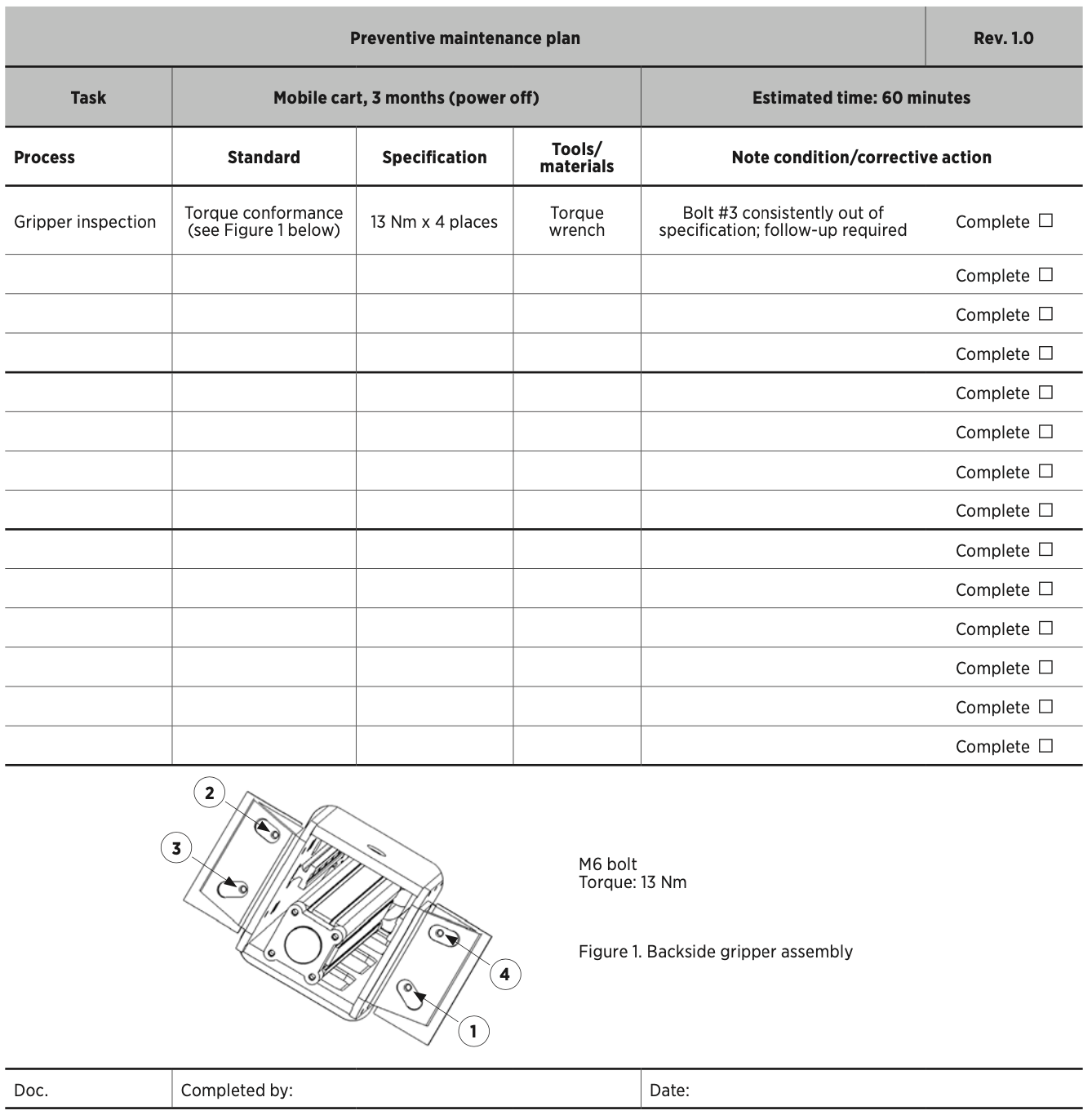 - It is visual. The technician (or the skilled operator) can see where bolt # 3 is located. No guessing, easy to read. These people usually don’t like reading big blocks of text.