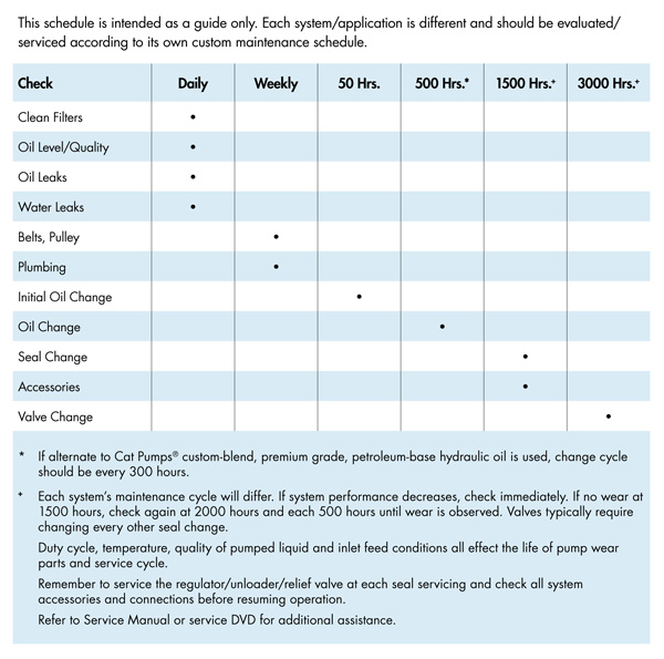 I found this simple example at https://www.catpumps.co.uk. It is typical of what manufacturers typically provide to their customers. “Do this and our equipment will run optimally”.